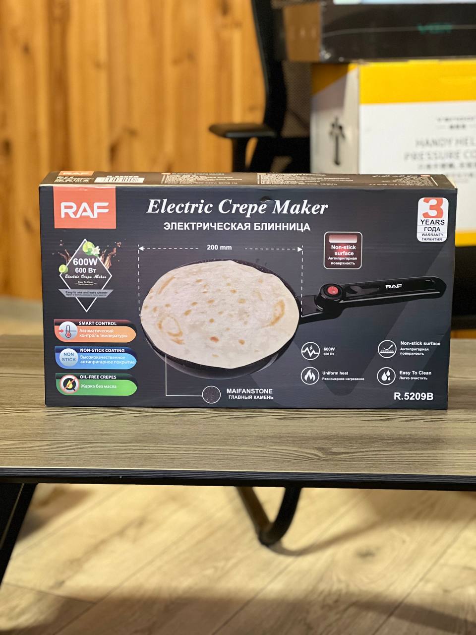 Чарівний аромат свіжих млинців, що ніжно тануть у роті, ідеальна золотиста скоринка – все це стане вашим щоденним частуванням завдяки млинниці RAF R.5209. Наша млинниця – це не просто кухонний прилад, це ключ до неймовірного кулінарного досвіду у вашій власній кухні! Особливості млинниці RAF R.5209: Професійні результати в домашніх умовах: З потужністю 1200 Вт і рівномірним нагріванням, ви завжди отримаєте ідеальні млинці, золотисті й ароматні, як у найкращих ресторанах. Багатофункціональність: Крім млинців, млинниця ідеально підходить для приготування коржів, оладок та інших варіацій тістових виробів. Творіть кулінарні шедеври легко і швидко! Простота у використанні: Інтуїтивний інтерфейс і регульований термостат дають вам змогу легко контролювати процес приготування, щоб кожен млинець був ідеальним. Легкість у догляді: Антипригарне покриття і знімні елементи роблять чищення швидким і простим. Більше не потрібно турбуватися про складний догляд за пристроєм!