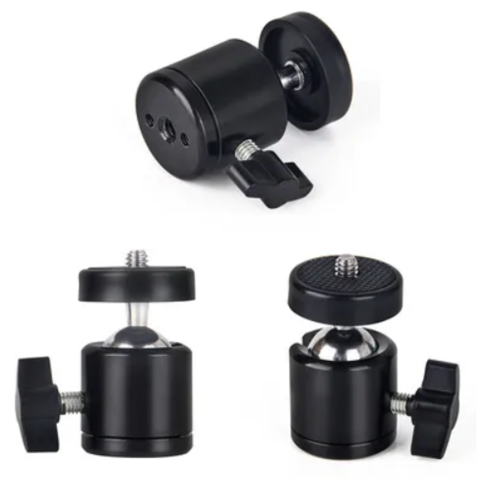 Це зручне технологічне рішення для кріплення вашого девайсу до штатива. Має надійну фіксацію завдяки гвинту. Штативна головка це невелика кульова головка, яка дозволяє встановити камеру, тримач для телефону або кільцеву лампу вагою до 2 кг на штатив, струбцину, стійку або будь-яку іншу опору з гвинтом посадкового діаметром 1/4. Особливості: Діаметр – 2,8 см Повністю металевий Розрахований під гвинт 1/4 дюйма Повертається на 360 ° Гвинт 1/4 дюйма витримує навантаження до 1,5 кг