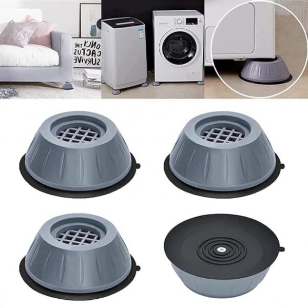 Це універсальні підставки для пральних машин, що амортизують. Дані подушки для ніжок пральної машини потрібні для того, щоб знизити її вібрацію під час прання. Також, окрім зниження коливання машинки, підставки виконують ще й інші функції. Вони не дають ковзати пральну машинку по підлозі, не дають їй стрибати, а також знижують рівень шуму.