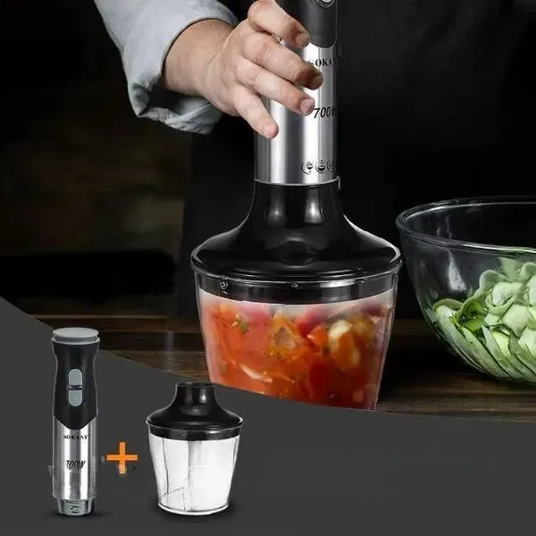 Блендер 4-в-1 Sokany H— це універсальний кухонний прилад, який стане вашим надійним помічником у приготуванні різноманітних страв. Завдяки потужності 1000 Вт, блендер легко справляється з подрібненням, змішуванням та збиванням. У комплекті йде 4 насадки, які дозволяють виконувати різні функції: подрібнення твердих продуктів, приготування смузі, збивання кремів та багато іншого. Корпус та насадки з нержавіючої сталі забезпечують довговічність та гігієнічність. Компактний дизайн та легка вага роблять блендер зручним у використанні та зберіганні. Захист від перегріву гарантує безпеку та продовжує термін служби пристрою.