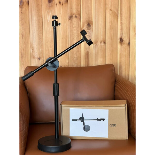 Штатив журавель для предметної зйомки. Максимальна робоча висота штатива – 57.5 см. Зафіксувати телефон можна у тримачі, що йде в комплекті. Максимально можлива ширина екрану до 8,5 см. У комплекті також йде шарнірний механізм, завдяки якому можна обертати телефон на 360 градусів.