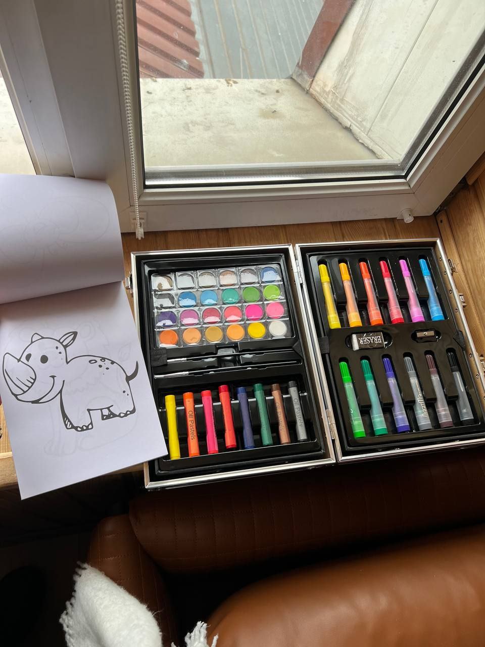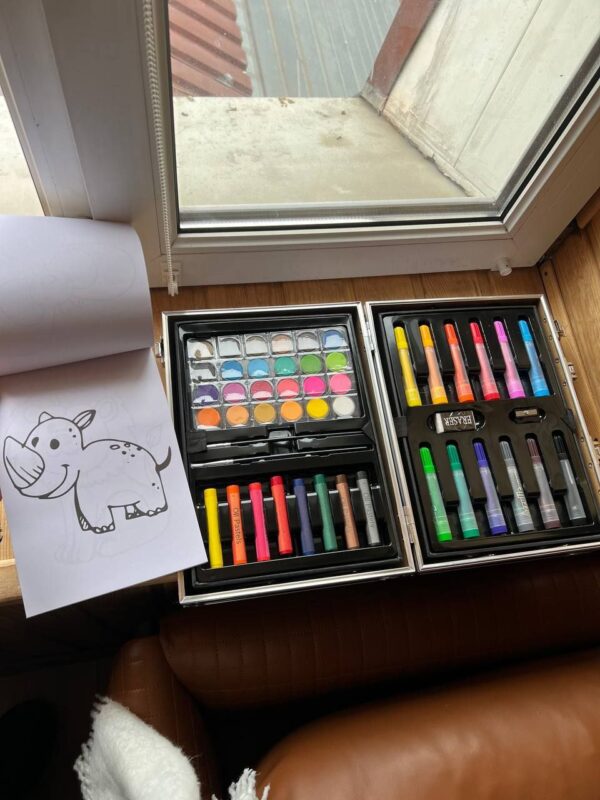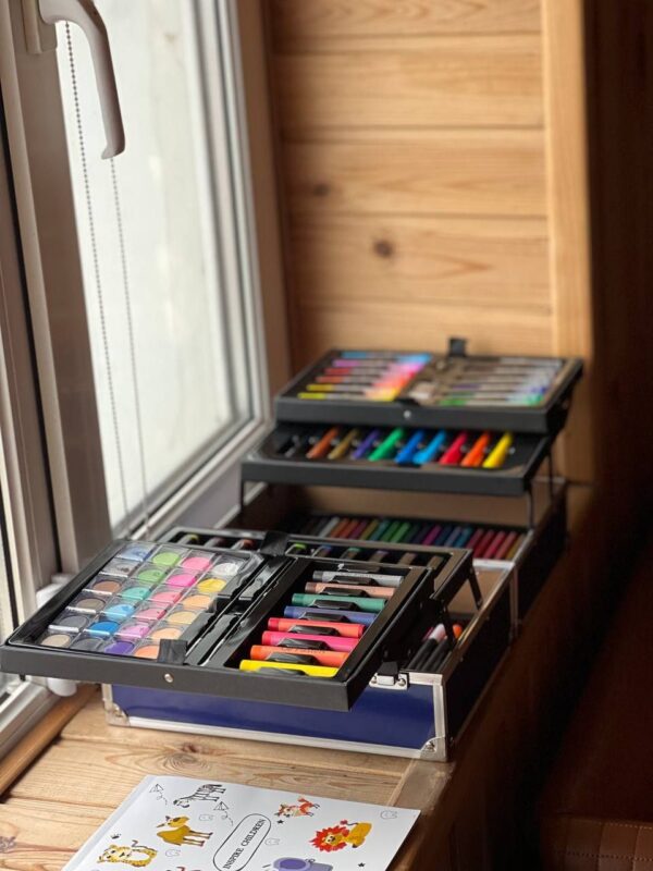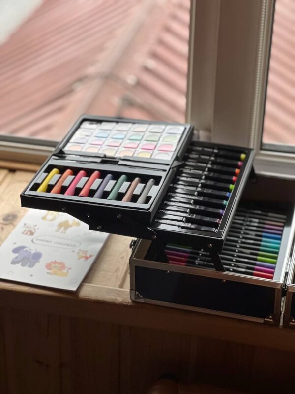 Яскраві акрилові маркери, пастелі, фарби та багато іншого допоможуть розвинути творчу уяву та ручні навички. Валіза зі зручною ручкою дає змогу легко брати набір із собою в подорожі або на заняття, забезпечуючи зручність зберігання і транспортування.