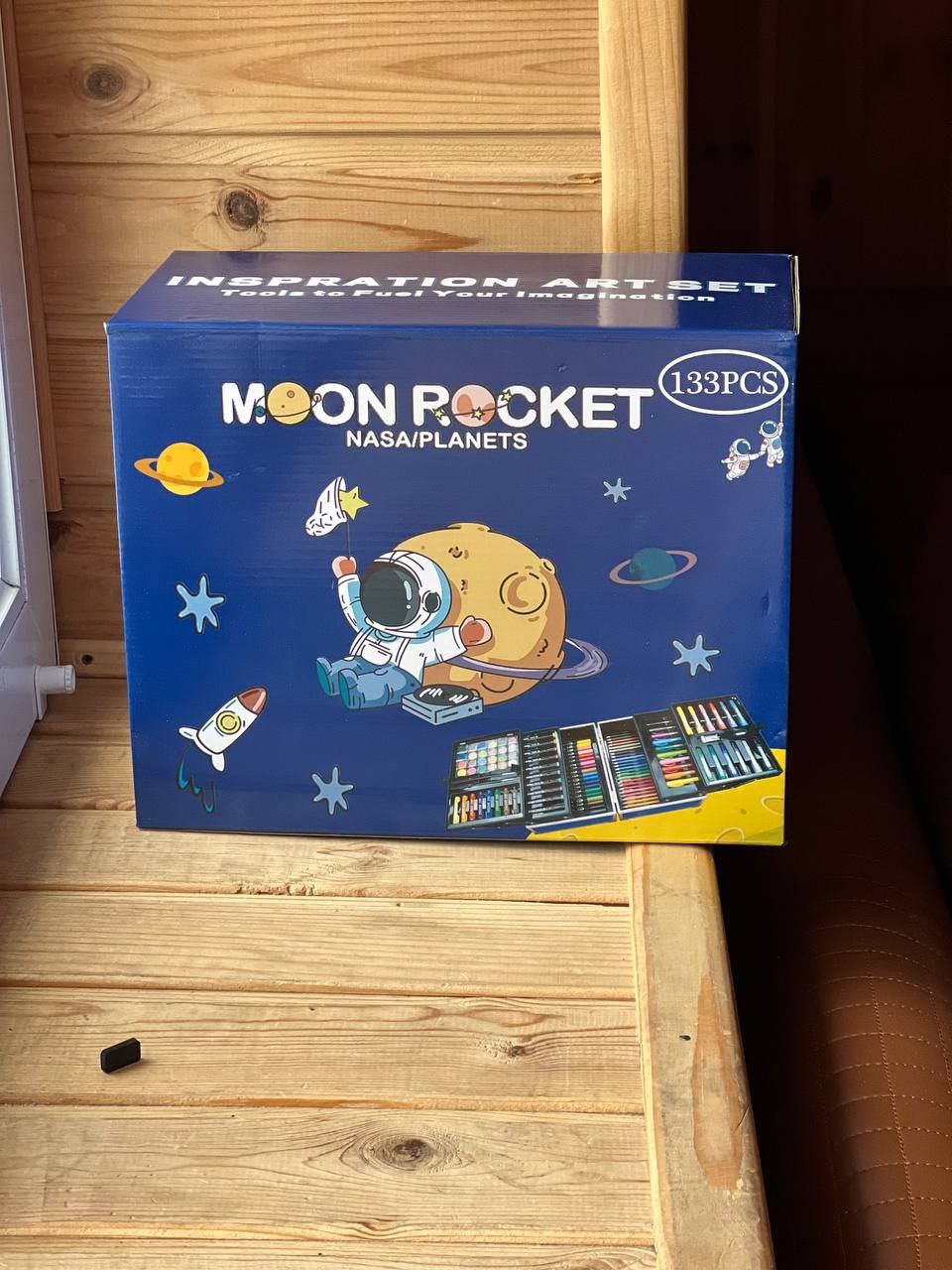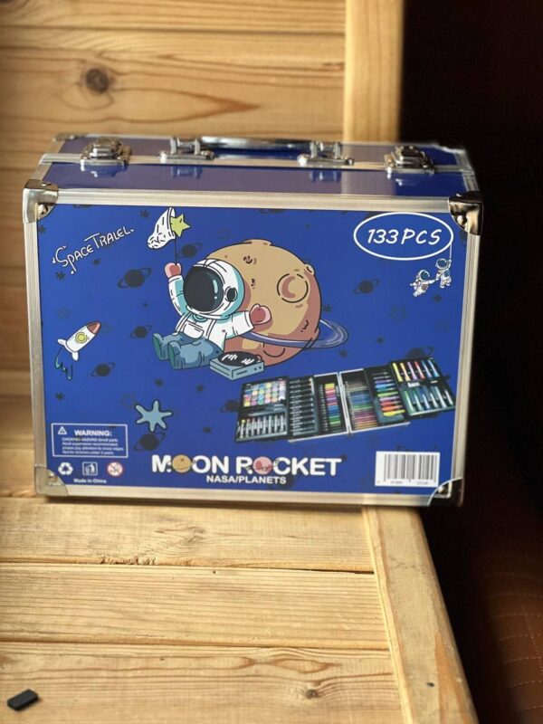Дитячий художній набір для творчості та малювання в стильній розкладній валізці з космічним дизайном. Набір містить 133 різні елементи, що надають дитині можливість вивчати різні техніки малювання та живопису.
