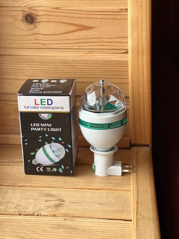 Її можна встановити у люстрах, нічниках, торшерах, настільних лампах. Це не складає жодних труднощів, при включенні диско лампи загоряються світлодіоди і колба обертається навколо своєї осі.
