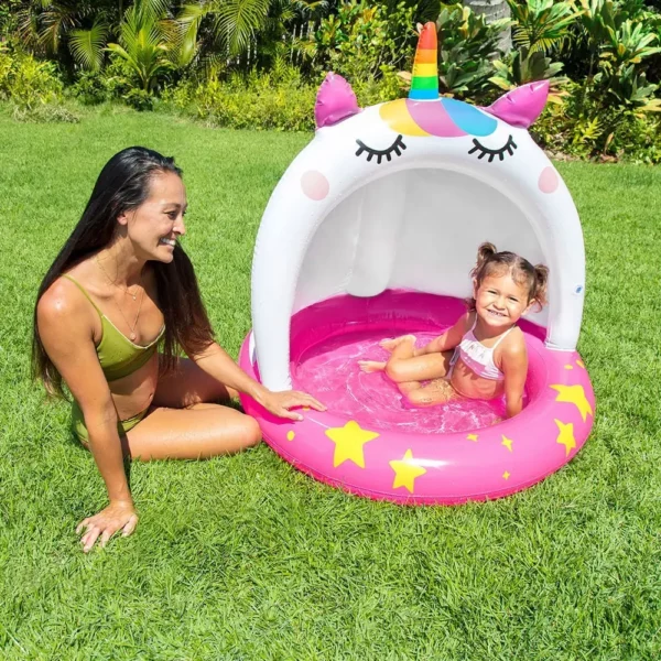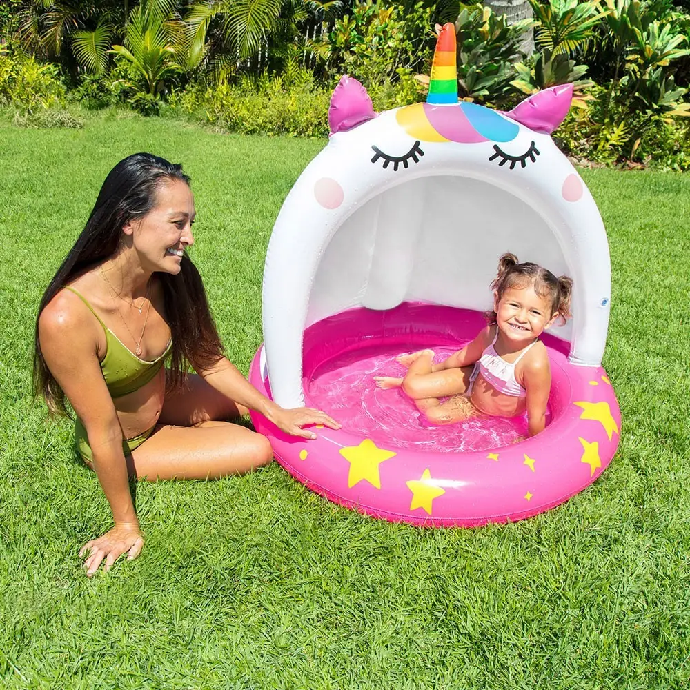 Басейн Intex 58438 «Єдиноріг» — це той самий момент, коли дитинство наповнюється магією. Ніжні кольори, чарівний дизайн у вигляді єдинорога, навіс від сонця та надувне дно — усе створене для турботливого та безпечного відпочинку малюка.