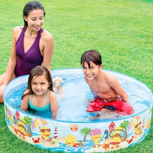 Ідеальний для дітей від 2 до 6 років. Об’єм 218 літрів (при заповненні на 80%) дозволяє зручно сидіти, бризкатись і гратись у воді. Завдяки конструкції без надувних частин, басейн готовий до використання за кілька хвилин — просто наповніть його водою.