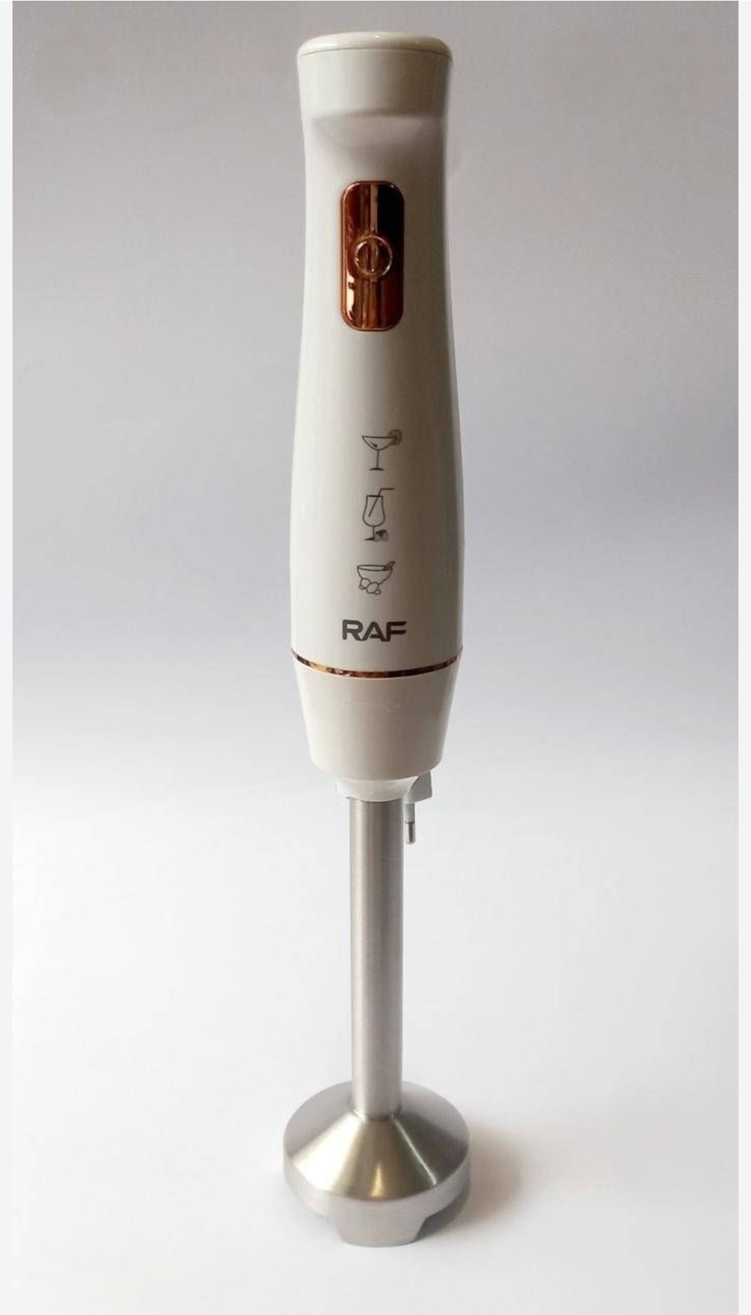 Блендер занурювальний RAF R.303w – це комбінований кухонний прилад. C його допомогою можна приготувати, подрібнити, перемішати до однорідної маси багато харчових компонентів, починаючи від дитячого харчування і закінчуючи вишуканими, легкими і дієтичними супами-пюре.Можна приготувати майонез, різні соуси, смузі тощо, виконуючи по суті роль міксера.Характеристики: