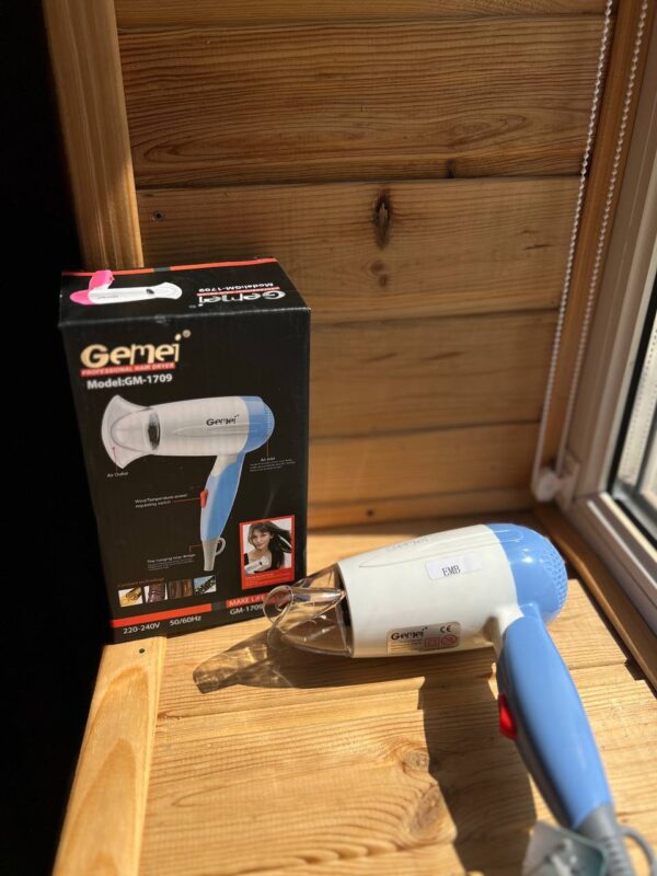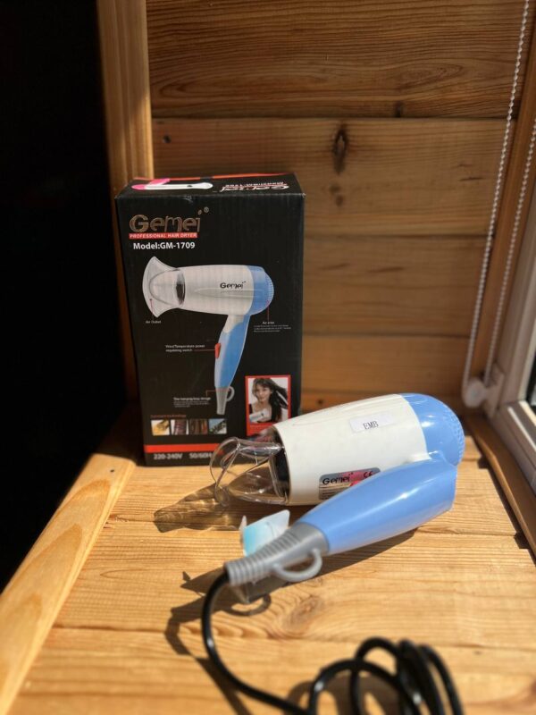 Дорожній складний фен для волосся Gemei GM-1709 1000W – Відмінно підійде для тих хто не сидить на місці і любить подорожувати. регульованої потужності дозволить зробити це більш делікатно. Відмінний подарунок дівчині, мамі, сестрі.