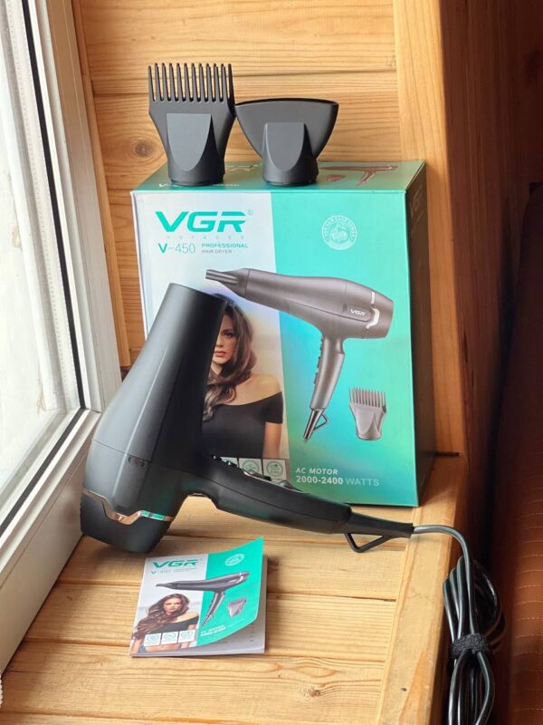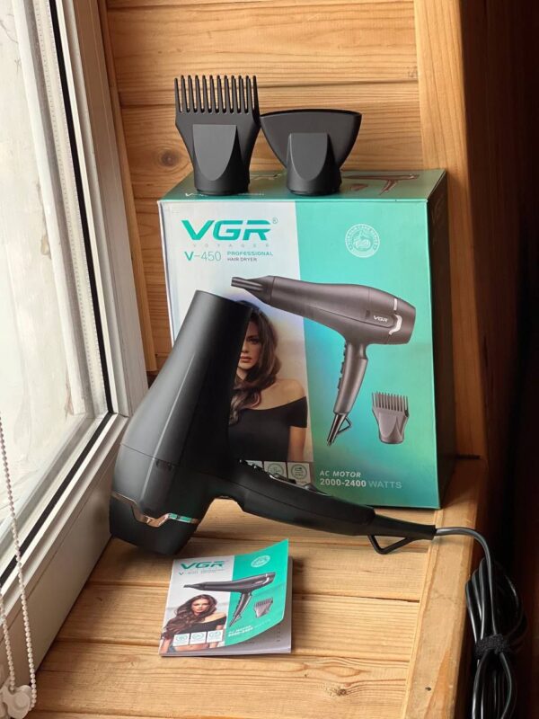 Фен професійний VGR V-450 найчастіше використовується в салонах краси, а також у перукарнях, проте на сьогоднішній день його дуже часто купують дівчата, що бережуть своє волосся. Професійний фен для волосся відрізняється від інших тим, що має більш високу потужність (2400 Вт) і висушити волосся він зможе набагато швидше. Фен має два швидкісні режими, тому з його допомогою можна зробити цікаве укладання, випрямити волосся або ж закрутити локони.