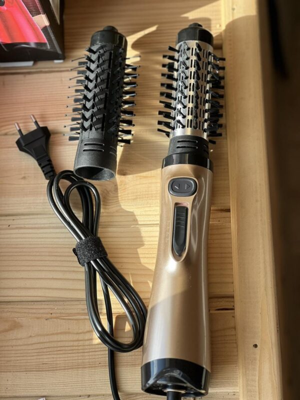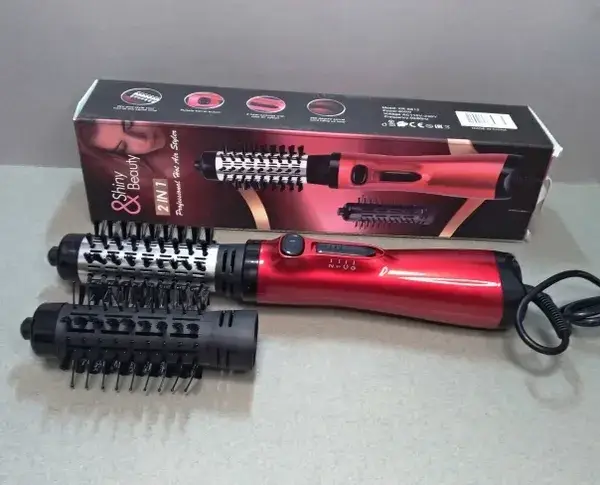 - Фен-щітка має в комплекті різні насадки, які допоможуть створити образ для будь-якої події або просто висушити голову після душу