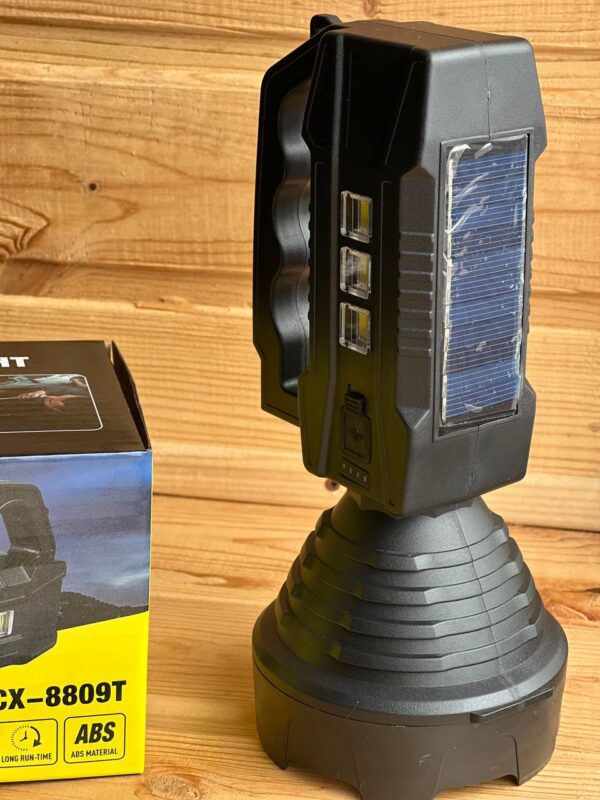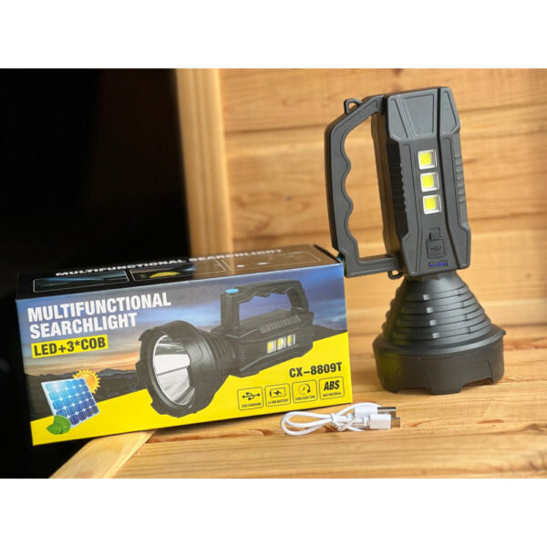Світлодіодний ліхтарик-8809 , 3 світлодіоди COB для режиму ліхтарика, тепер літій-іонний акумулятор, USB та сонячна зарядна панель.