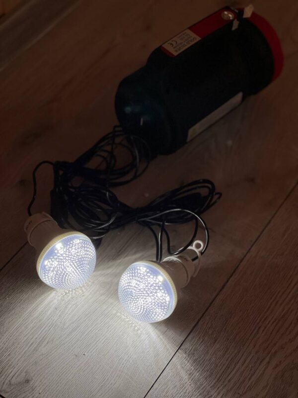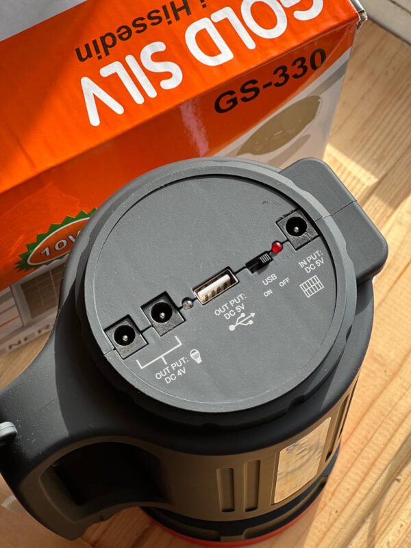 Даний ліхтар можна використовувати при відключеннях електрики або без стаціонарних джерел електроенергії. З її допомогою можна зарядити телефон або планшет, а також забезпечити освітлення (світлодіодними лампами, що входять в комплект) за рахунок вбудованого акумулятора та сонячної енергії. У лампочках використовуються потужні та економічні світлодіоди білого кольору. Їх яскравості достатньо практично для будь-яких завдань – чи то читання чи приготування їжі. Зарядити вбудований акумулятор системи можна двома способами: від мережі 220В (13 годин) або від сонячної батареї (12 годин). При повністю зарядженому акумуляторі час роботи складає: 18 годин – при використанні 1-ї лампочки 12 годин – при використанні двох лампочок 7 годин – при використанні 3-ї лампочки Потужний акумуляторний світлодіодний ліхтар DAT AT-X9 з FM-радіо та MP3-плеєром. Цей високоякісний прожектор з FM-радіо та MP3-плеєром. Структура всієї системи проста, а установка досить проста в експлуатації. Він оснащений 15-ватним прожектором та бічним ліхтарем, а також виходом USB 5V-1A, який дозволяє заряджати телефони від внутрішньої 6-вольтової батареї.