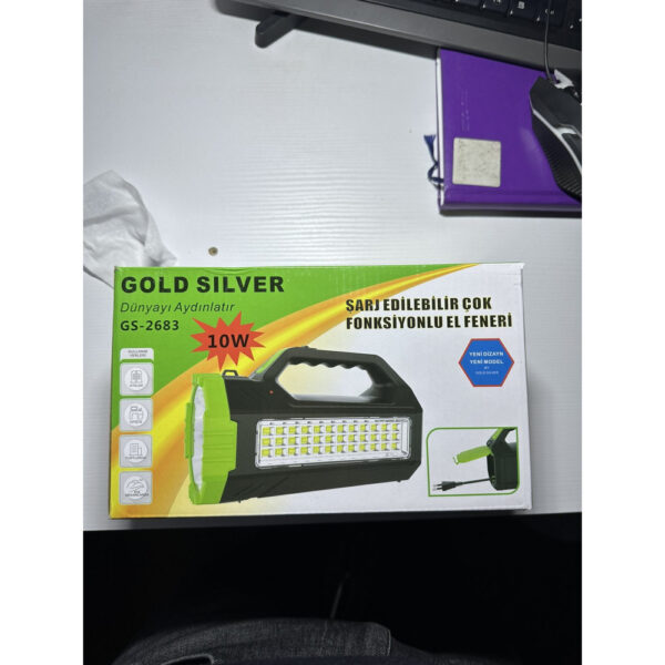 Універсальні світлодіодні ліхтарі-прожектори на акумуляторах Gold Silver GS-2683 мають зручний прогумований пластиковий корпус, який забезпечує захист від механічних пошкоджень і впливу довкілля. Використання потужних сучасних світлодіодів і професійного відбивача дає змогу зберегти енергію акумулятора на тривалий термін. Ліхтарі мають вбудований зарядний пристрій, світлодіодний індикатор живлення й заряджаються від мережі 220 В, за допомогою кабелю з штекером. Сфокусований потужний світловий промінь, або розсіяне бічне світіння, роблять цей ліхтар універсальним. Економність, яскраве світло, компактний розмір, легка вага, сучасний дизайн. Ліхтарі прожектори ідеально підійдуть у побуті, для кемпінгу, вечірніх прогулянок, риболовлі, полювання, туризму та інших заходів на природі.