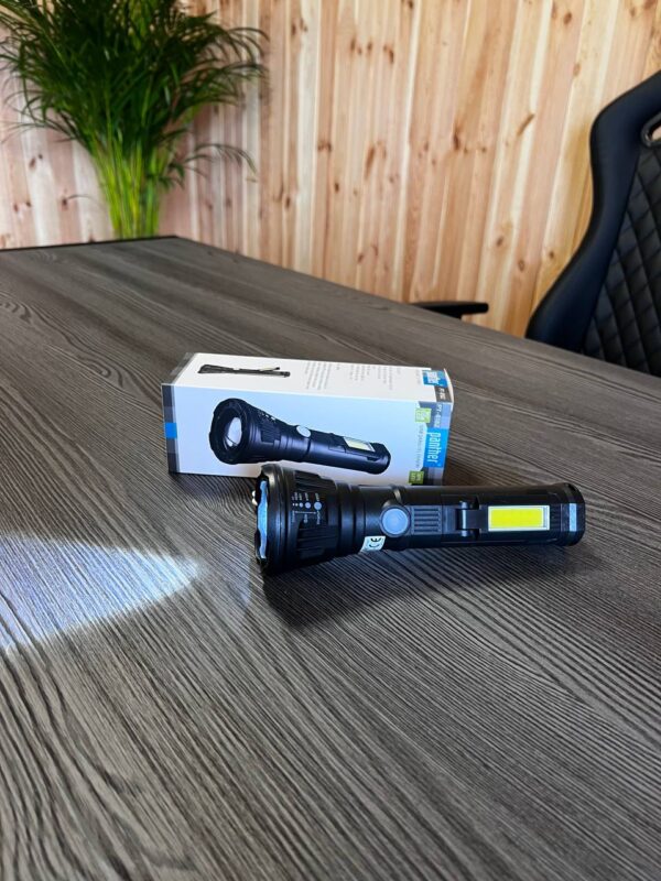 Ліхтар переносний Voltronic Panther PT-8182, 3+1 режими, 1+COB, вбудований акумулятор, USB-кабель.Світлодіод XPE + світлодіод COB, що регулюється під кутом 90°редій світлодіод Xpe: багатофункціональне світло, мигалкаБоковий світлодіод Cob: Multi LightУвеличение x1, x250, x500, x1000, x2000Макс. 500 люменВбудований акумулятор 800 мА·год 18650 Заряджається за допомогою USB-кабелю 5V.коли ви натискаєте кнопку «Вмик./Вимк.», запускаються режими багатофункціонального світлодіодного індикатора XPE та миготіння на передній панелі відповідно.3 натискання Cob Led збоку загоряється.Cob Led збоку можна використовувати під різними кутами до 90 градусів.