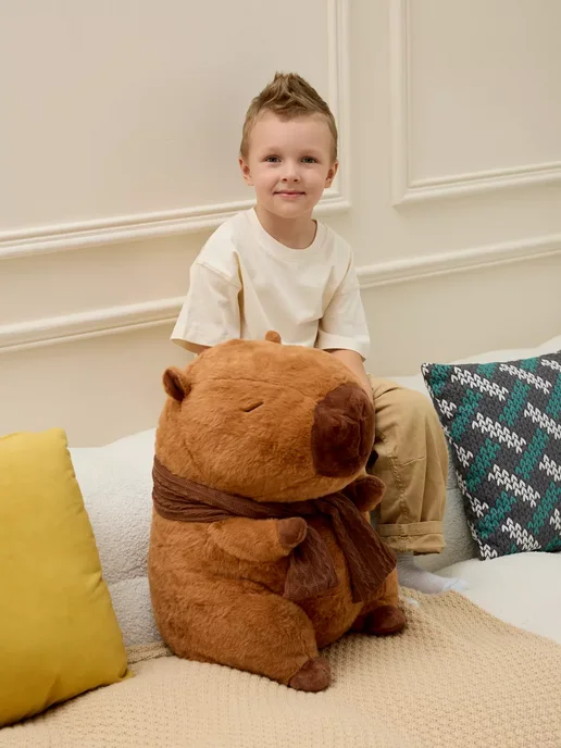 Це миле створення уособлює собою спокій і умиротворення. М’яка іграшка капібара з задоволенням займе почесне місце у вашому інтер’єрі, прикрасить собою кімнату, а також допоможе зняти стрес після важкого дня. Стане гарним другом для вашої дитини. Іграшка виготовлена з якісних матеріалів. І гідно перенесе безліч пригод.