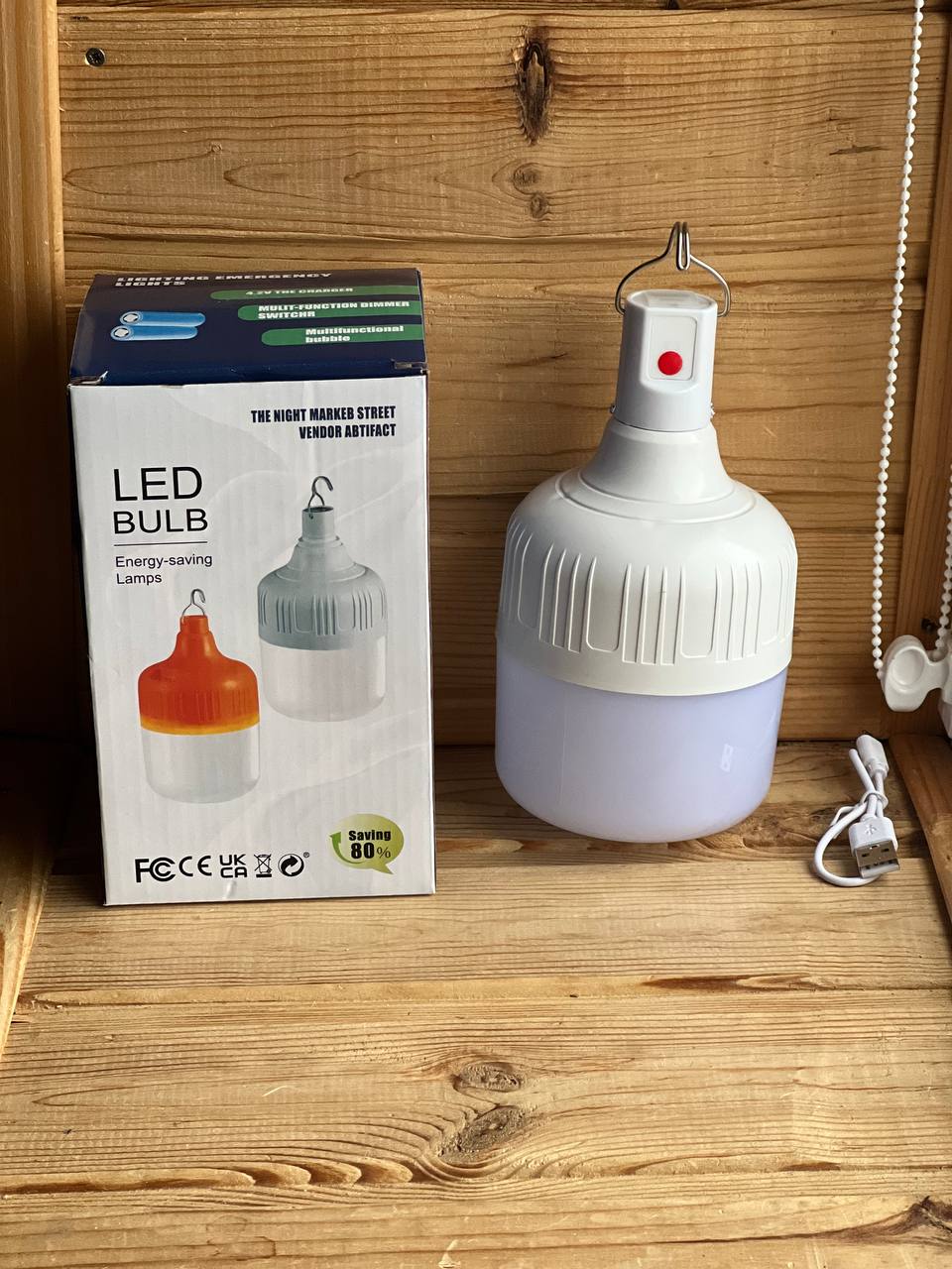 Лампа акумуляторна з гачком для кемпінгу (підвісний аварійний ліхтар). Супер яскрава світлодіодна кемпінгова лампа, яку можна використовувати в будь-яких умовах: у будинку, у дворі, гаражі, на природі, наметі і т.д. Має 5 режимів Виробник заявляє 6-8 годин безперервної роботи, за фактом на максимумі працює 2-3 години потім потихеньку тьмяніє!