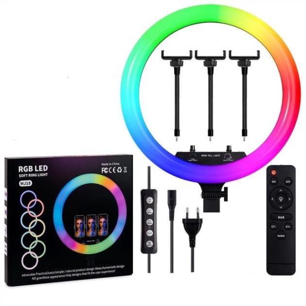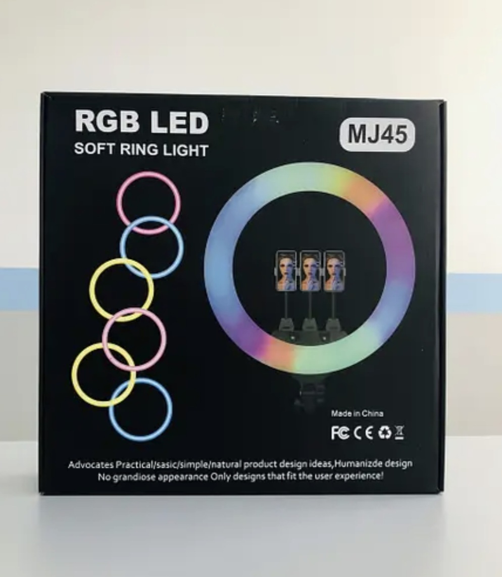 справжня “мрія тіктокера” – кольорова кільцева лампа MJ45 – стала реальністю. А в комплекті кольорова кільцева лампа – справжнє професійне освітлення для фото і відео зйомок. Кольорова лампа використовується як для світла, що заповнює, так для контрового і малює. Ідеально підійде для блогерів, візажистів, тіктокеров, фотографів і всіх, хто працює з контентом.