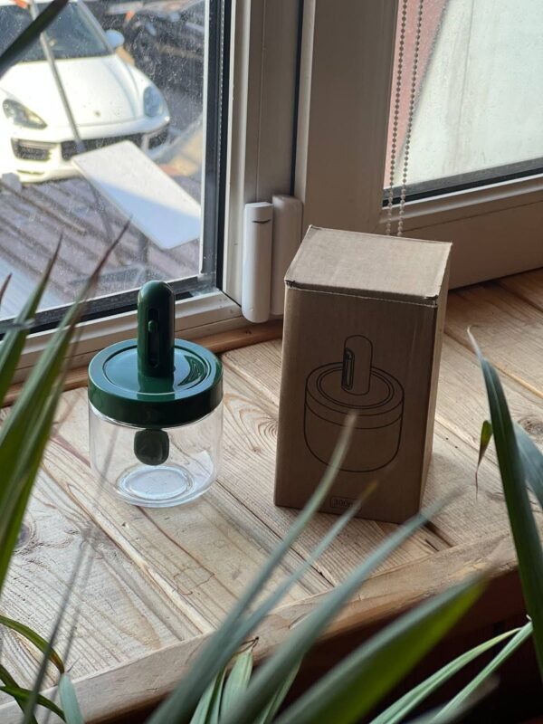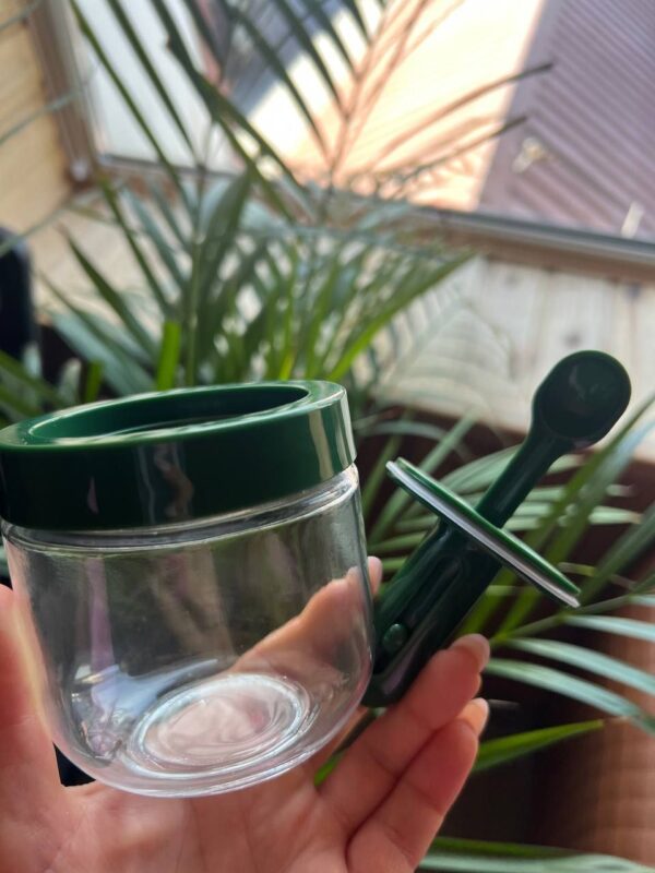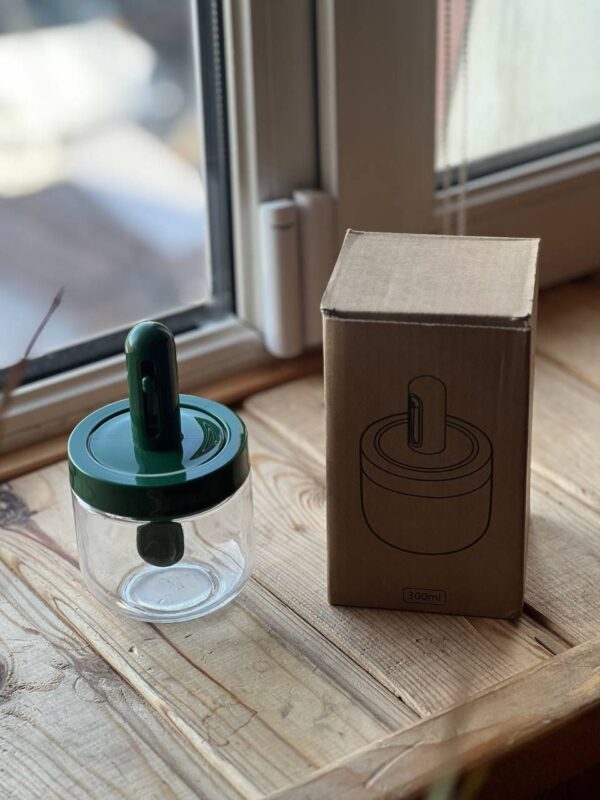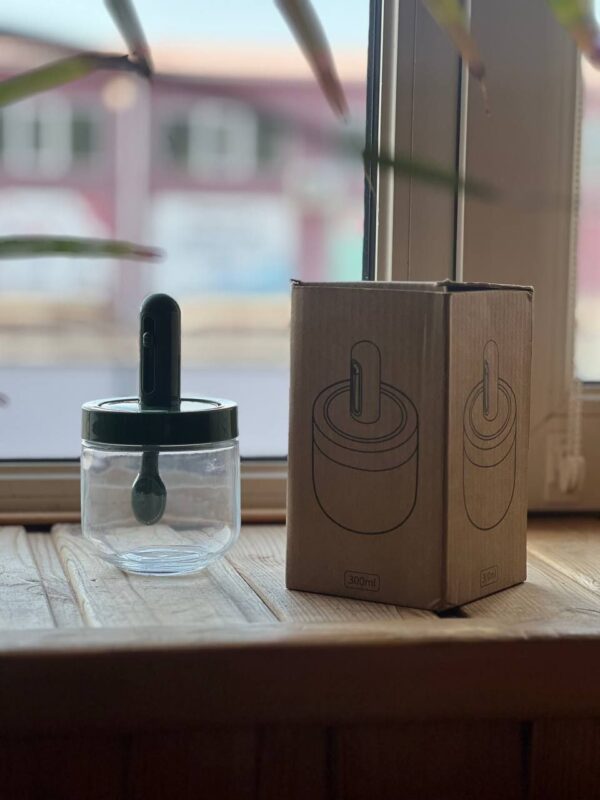 Банку для приправ із висувною кришкою-ложкою. Банк також має герметичну силіконову прокладку на широкому шийці кришки для герметичного закриття, тому будь-який інгредієнт зберігає свіжість довше.