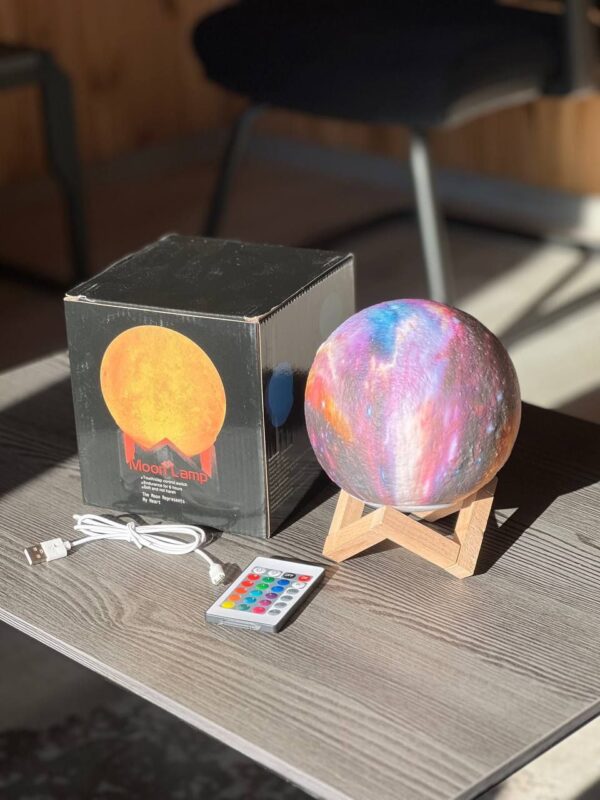 Темними вечорами часом так хочеться затишку та тепла – завернутися у теплий плед, налити кружечку гарячого шоколаду, включити приглушене м’яке світло та просто посидіти, помріяти, подивитися у вікно, послухати стукіт дощу по даху. У такий вечір для створення відповідного настрою ідеально підійдуть наші 3D світильники Космос. Лампа Космос 3D виготовлена за допомогою інноваційної технології 3D-друку. Текстура корпусу імітує справжній зовнішній вигляд кратерів на поверхні космосу і виглядає дуже красиво. М’яке світло рівномірно і плавно розсіюється по кімнаті, дає відчуття затишку та тепла.