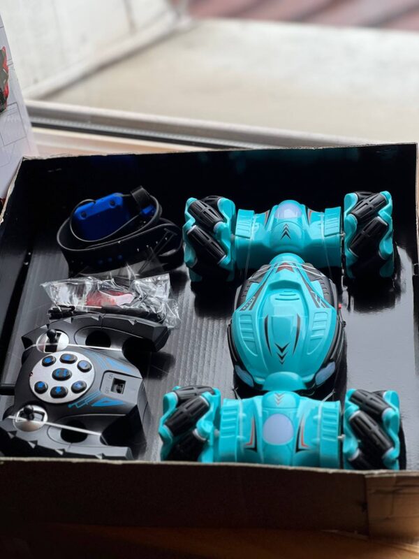 Опустив трохи руку вперед, машинка мчить вперед, потрібно об’їхати перешкоду, легко, нахиляєш руку вліво або вправо, і машинка відразу реагує на команду!