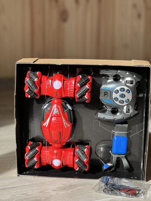 Приємний бонус – машинка та пульт-браслет на акумуляторах і заряджаються від звичайного USB, тепер не доведеться витрачати зайві гроші на батареї.