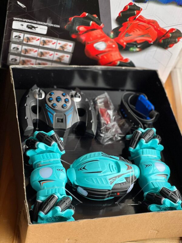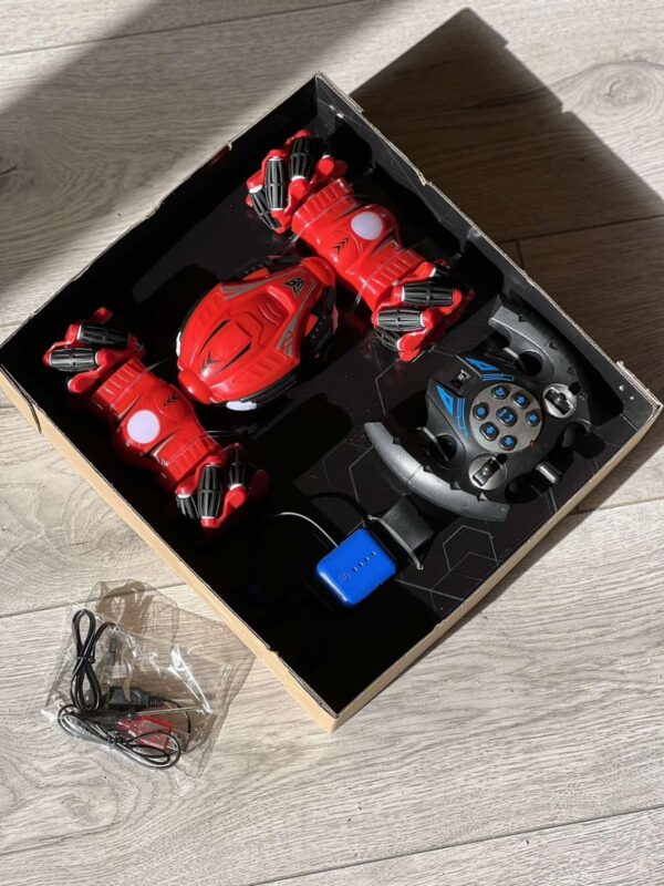 Мало того, що вона виконує розвороти на 360 градусів, вміє піднімати кабіну для кращої прохідності бездоріжжям, їздить боком, їздить вгору ногами, дуже швидка і красива, так само вона управляється від браслета, який кріпиться на руку.