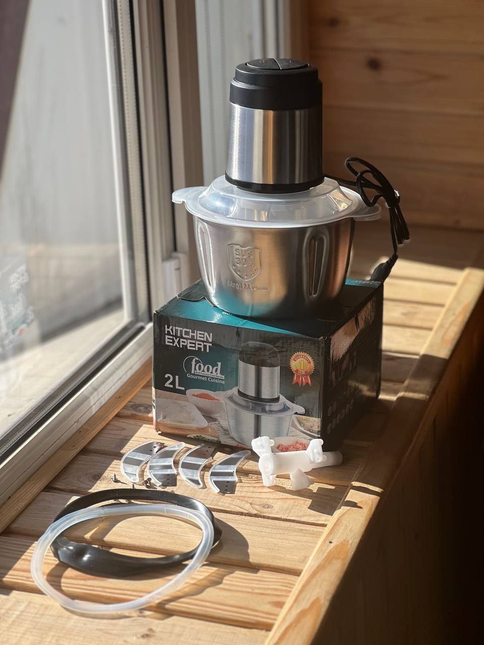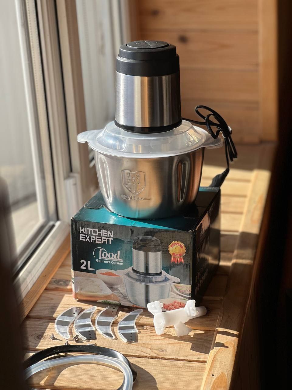 Вся маса перебивається в металевій чаші, об’ємом 2 л. Цей подрібнювач має спеціальний диск для збивання, який за лічені хвилини перетворить, наприклад, яєчні жовтки на ніжну, повітряну масу.