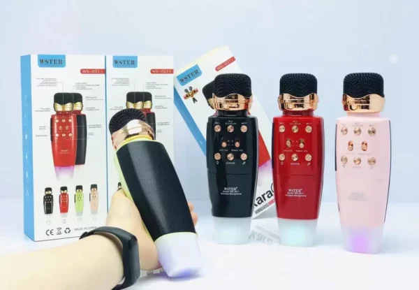 Особливості: – бездротовий зв’язок по Bluetooth універсально сумісна з Android, iOS телефонами – спрямований мікрофон – програє музику зі смартфона і дозволяє співати під треки, записуючи свої композиції (вбудований слот для картки пам’яті для запису музики у форматі МР3) – Ви можете регулювати звуковий ефект реверберації голосу (ехо) світлодіодне підсвічування як світломузика – Можна використовувати як звичайну портативну колонку для програвання музики зі смартфона або планшета – Модель має роз’єм для підключення навушників (зручно для людей, що займаються вокалом) – Сучасний протокол Bluetooth 4.0 забезпечує зниження споживання енергії при більш стабільному з’єднанні і швидкості передачі сигналу.