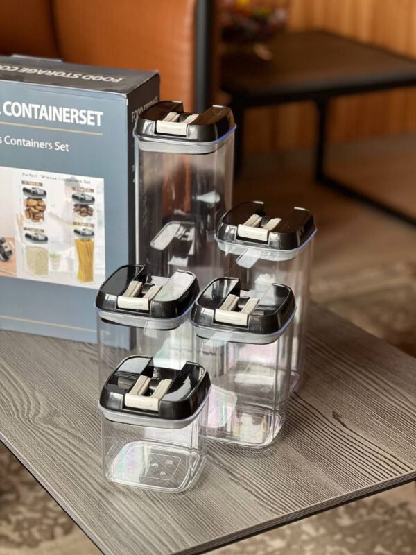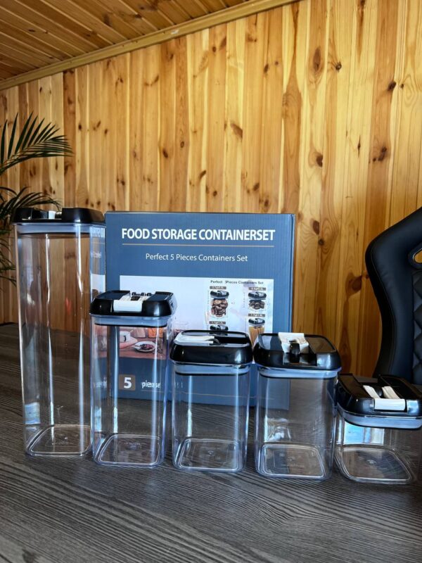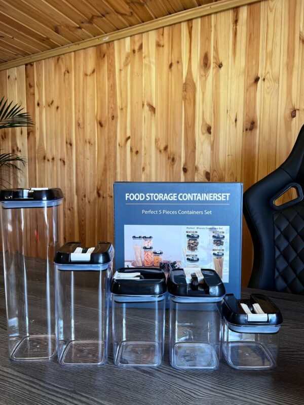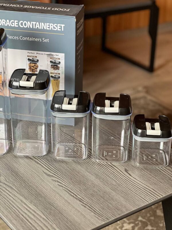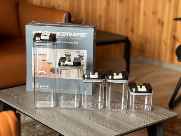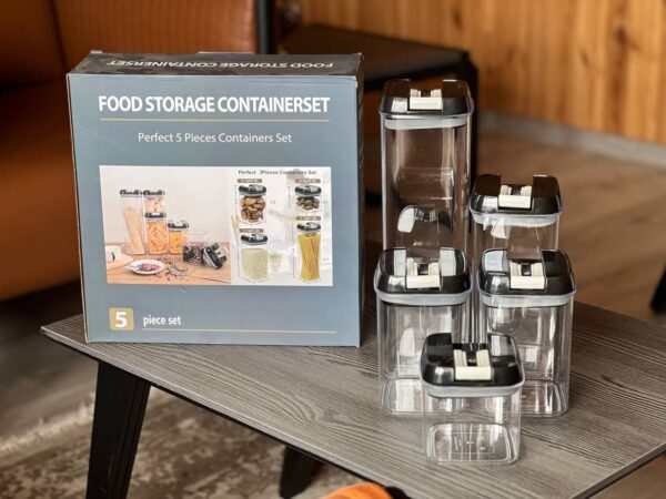 Набір контейнерів для зберігання продуктів із вісьми предметів забезпечує безпечне зберігання зернових, макаронних виробів, закусок та інших продуктів. Контейнери різних висот можна ставити один на одного для економії місця. Модульний дизайн ефективно використовує простір на кухні, а естетичний вигляд радує око щодня. Переваги: Ємності з небиткого харчового пластику без BPA Широке горло для зручності використання Блочний дизайн, який дозволяє ставити контейнери один на одного Герметичний ущільнювальний механізм Великий набір із 5 шт