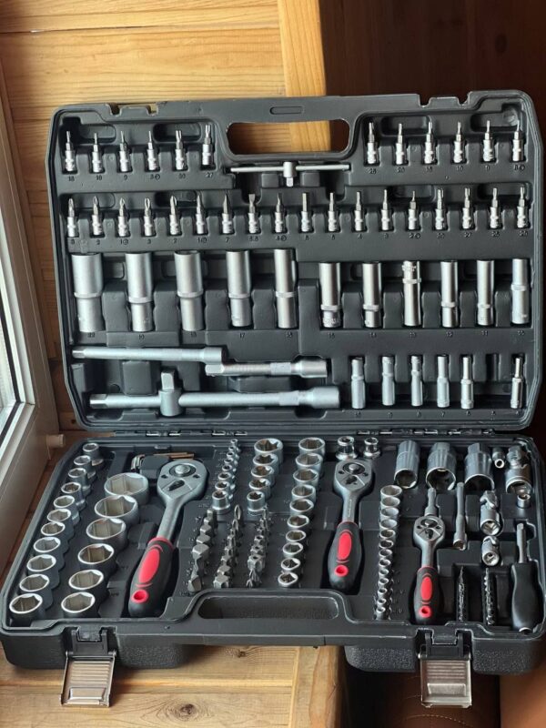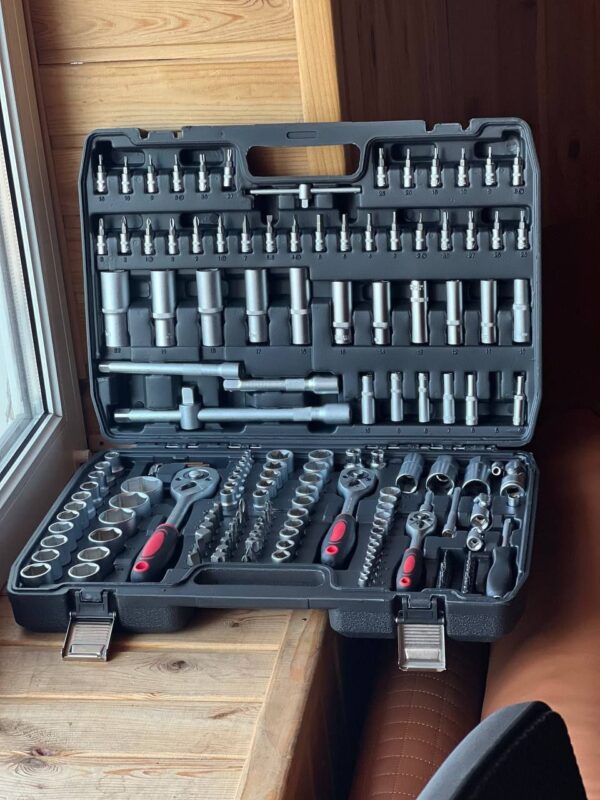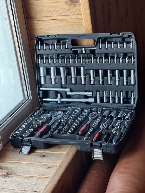 Набір включає в себе ключі різних розмірів, тріскачкові рукоятки з різною кількістю зубців для більш точних робіт, а також різноманітні насадки та перехідники. Завдяки цьому набору, будь-який автолюбитель або професійний механік зможе виконувати ремонтні роботи будь-якої складності. Кейс, в якому знаходиться інструмент, оснащений зручною ручкою для перенесення та надійними замками.