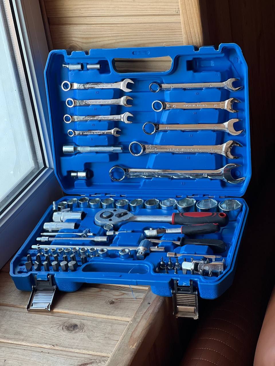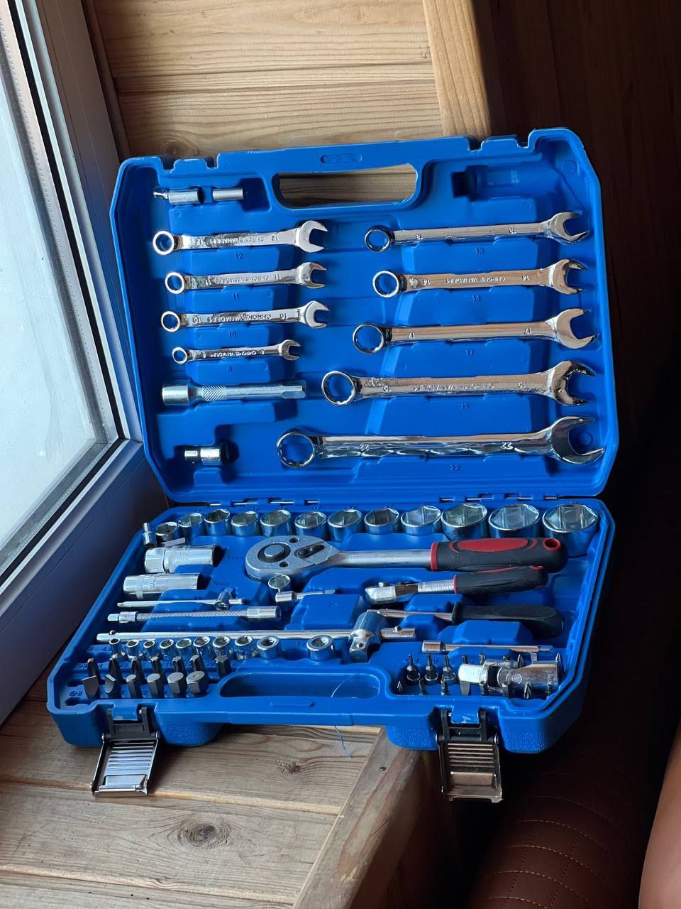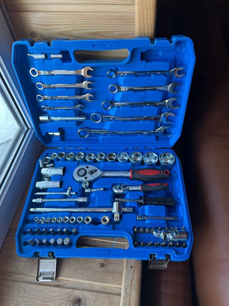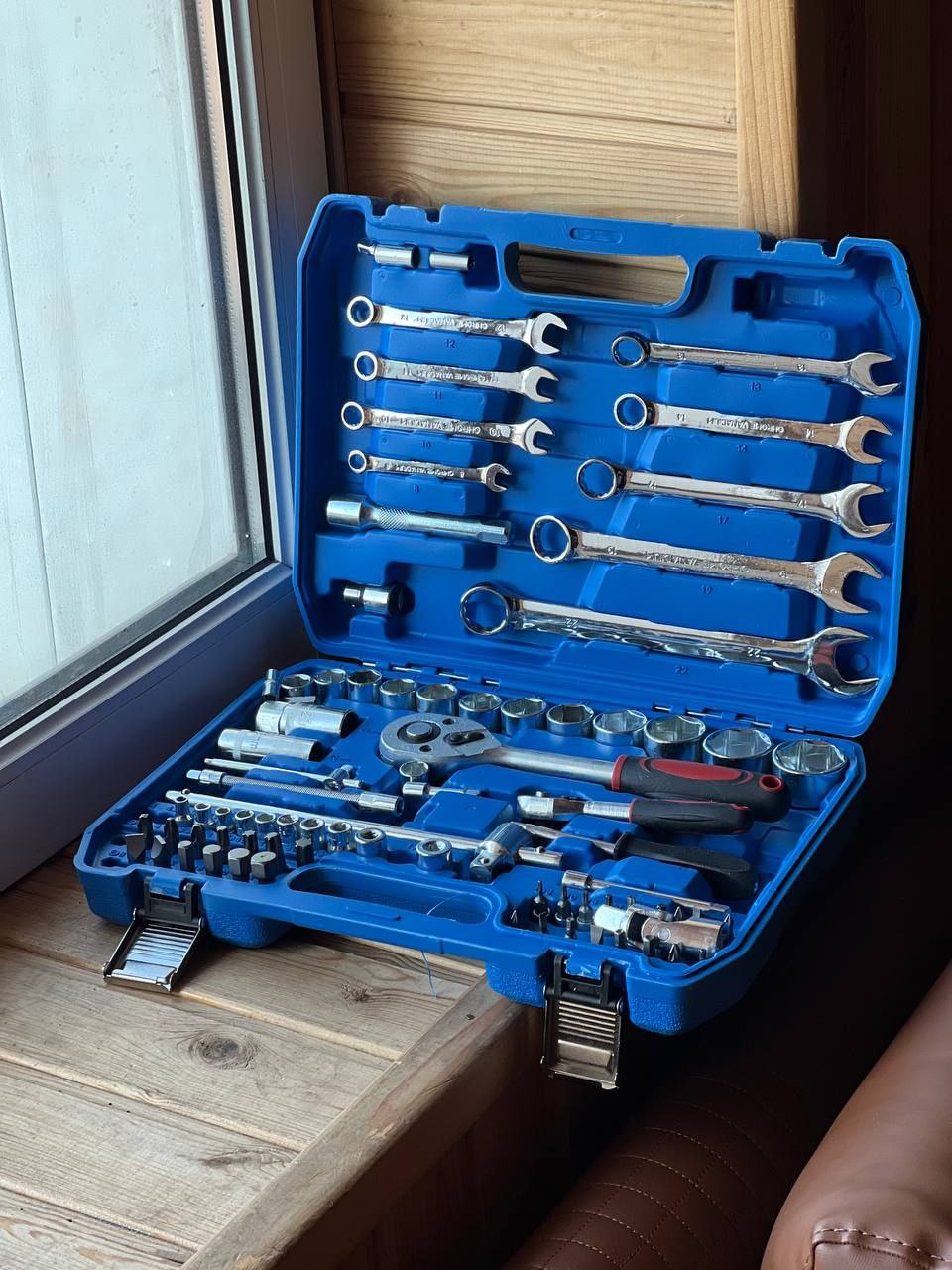 Набір містить 82 предмети, призначені для виконання різноманітних ремонтних і господарських робіт. Склад і конфігурація інструментів дозволяють використовувати його під час обслуговування автомобілів, мотоциклів, велосипедів, а також для виконання побутових завдань. Інструменти виготовлені з хромованадієвої сталі.