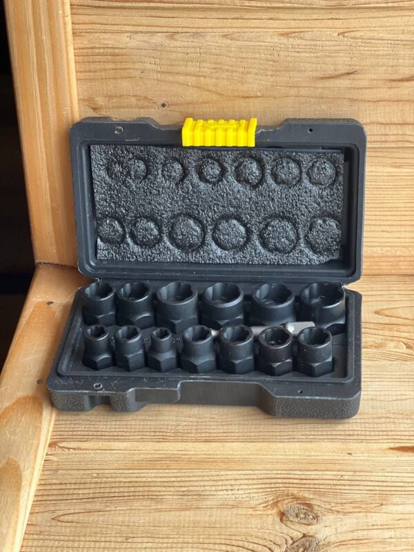 Nut Extractor ES-14 — це професійний набір екстракторів для швидкого та безпечного видалення пошкоджених, застряглих або заіржавлих болтів і гайок. До комплекту входять 14 екстракторів різних розмірів, виготовлених із міцної вуглецевої сталі, що забезпечує довговічність і надійність. Внутрішній профіль екстракторів гарантує надійне зчеплення з кріпленням, запобігаючи прослизанню. Зручний кейс забезпечує лад і зручність зберігання, роблячи набір незамінним помічником в автосервісі, майстерні та побуті.