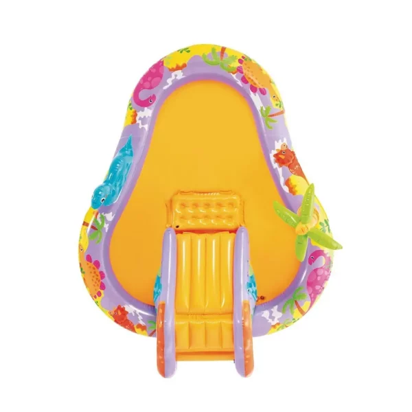 🦖 Літо — час пригод! Ігровий центр Intex «Динопарк» — це справжня доісторична країна розваг просто у вашому дворі. Вулкан-гірка, зелений динозавр із фонтаном, баскетбольне кільце в лапах та надувна пальма — усе продумано для максимального задоволення малюків.