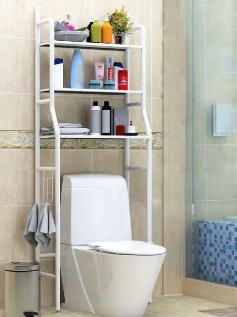 Стелаж для унітазу, дуже міцний та довговічний. Він може ефективно використовувати простір, що не використовується, над унітазом, створюючи кілька додаткових місць для зберігання в переповненій ванній кімнаті. Ідеально підходить для маленької ванної або туалету.