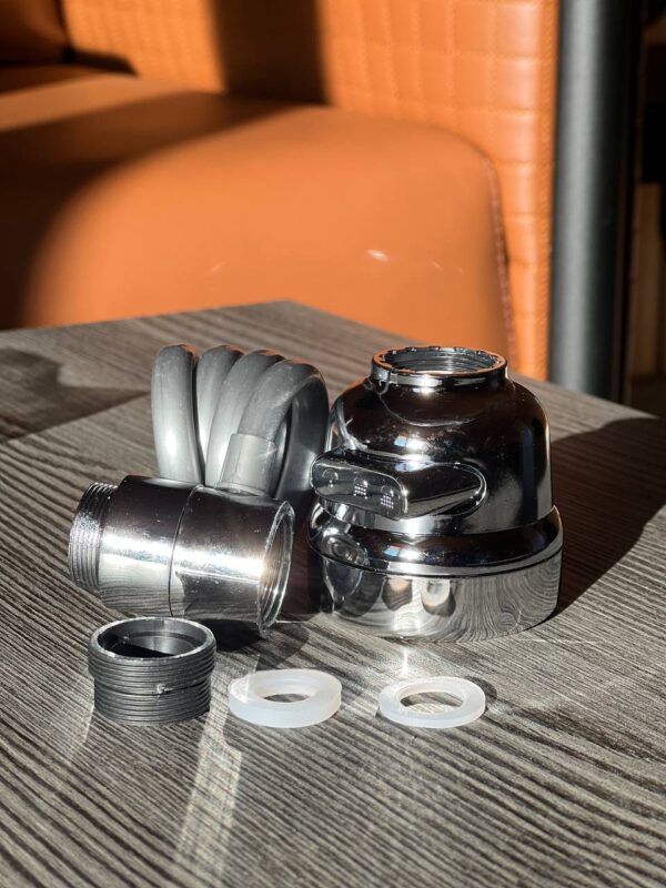 це насадка на змішувач, призначена для розпилення водного потоку, за рахунок цього економія води досягає 50%. Водозберігаючі аератори для змішувачів розбивають водний потік за допомогою повітря, тим самим насичуючи її, роблячи воду м’якшою і без бризок. Аератор для зменшення витрати води має три режими розпилення, які перемикаються кнопкою на корпусі. Це недорогий, але дуже корисний гаджет для будинку, який швидко окупиться з надлишком.