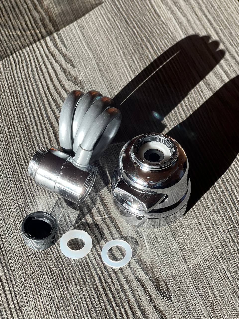 Завдяки насадці для змішувача на гнучкому шлангу, що повертається в усіх напрямках – Ви зможете направляти струмінь води в потрібний напрямок для зручності миття або полоскання посуду.
