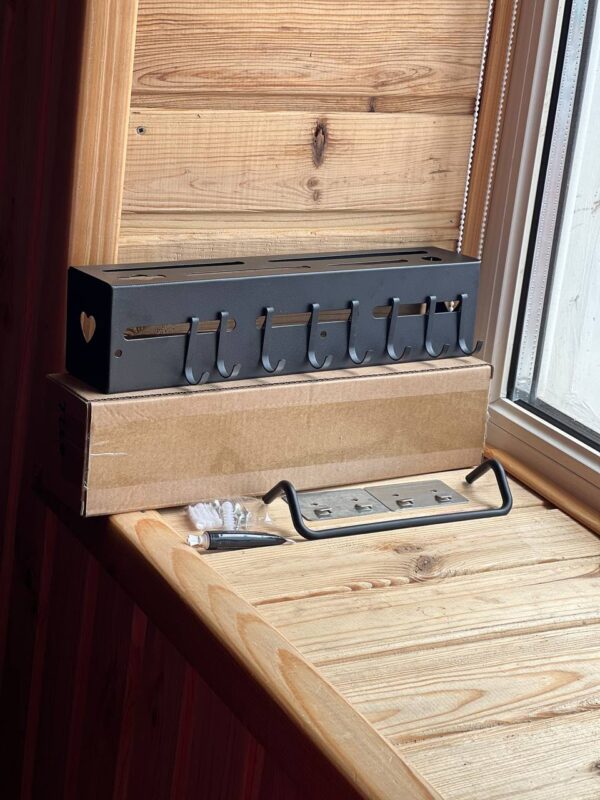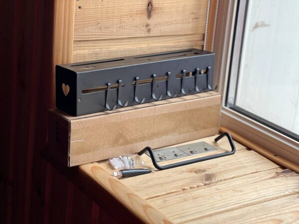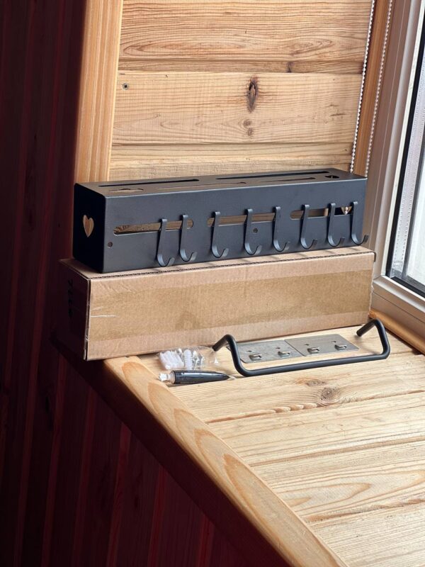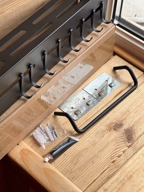 Функціональний органайзер. Ця настінна полиця складається з гачків, тримача для ножів, вішалки для рушників та тримача для ложок/вилок, що повністю відповідають вашим вимогам до організованої та акуратної кухні.