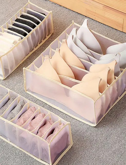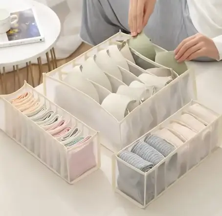 Комплект органайзерів для зберігання речей — це стильне та практичне рішення для упорядовування спідньої білизни, дрібних аксесуарів та інших предметів. До набору входять три органайзери різних розмірів і конфігурацій, які допомагають ефективно організувати простір у шафі або гардеробі.