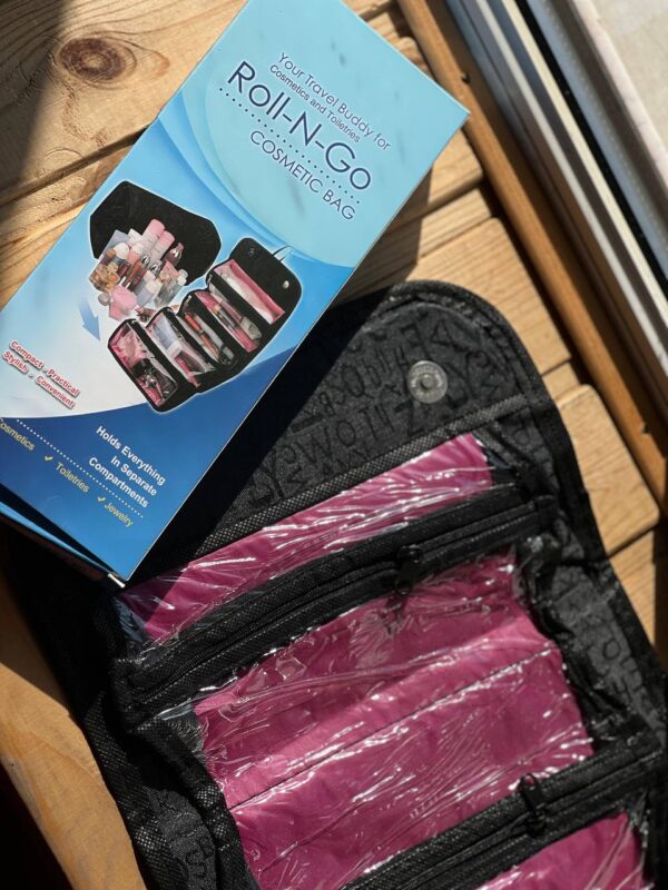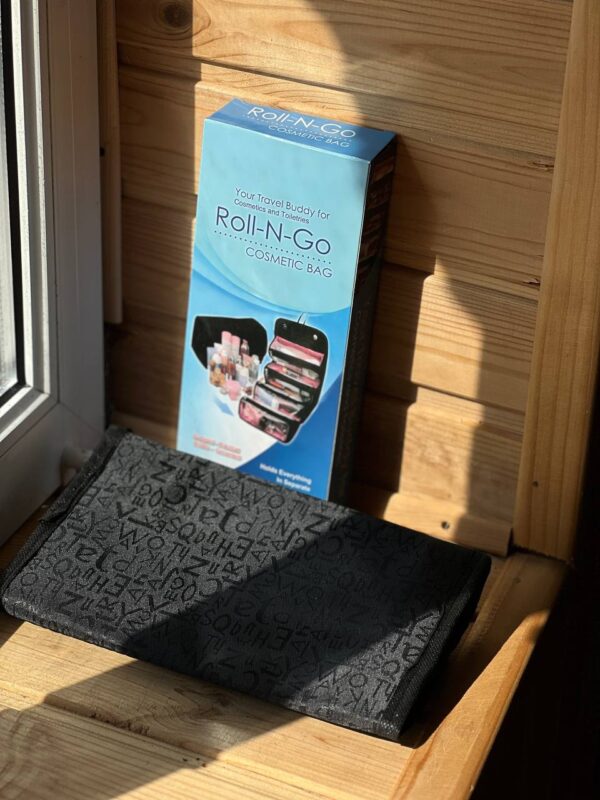 . Органайзер Roll-N-Go– це містка дорожня косметичка, яка здатна вмістити до 25 одиниць косметичних засобів. Така косметичка легко згортається, розстібається та застібається. Має спеціальний гачок, за допомогою якого можна підвісити її в розгорнутому вигляді.