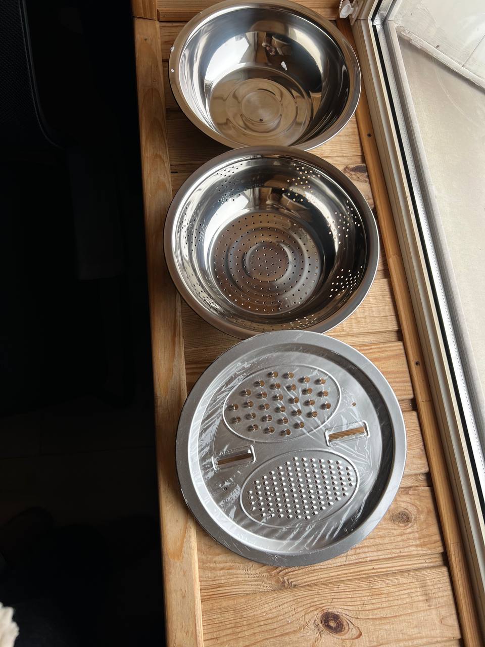 Багатофункціональний кухонний набір з нержавіючої сталі 3 в 1 Metal Basket Cutter Миска друшляк та тертка Універсальна овочерізка здатна стати заміною кухонному комбайну, що займає мало місця на кухні. За допомогою терки-овочерізки Kitchenware ви зможете використовувати мінімум посуду, а також ефективно натерти велику кількість відповідних продуктів. Насадки-леза з нержавіючої сталі, не схильні до окислення та іржі, не впливають на смак продуктів, зберігаючи свіжість та поживну цінність. Завдяки вбудованому слайсеру можна нарізати овочі тонкими скибочками. Леза тривалий час будуть чудовою гостротою. Терка-овочерізка зручно вставляється в кухонну миску, що дозволить задіяти менше посуду, фіксується у двох положеннях. Переваги: Міцний матеріал: набір виготовлений з харчової нержавіючої сталі Красиво відполіровано: внутрішня частина миски відполірована, щоб її зовнішній вигляд залишався як у день покупки Ідеальний дизайн: завдяки поглибленій конструкції немає необхідності турбуватися про бризки при збиванні та перемішуванні яєць зберігати Характеристики: Матеріал: нержавіюча сталь Вид: набір із 3 частин Догляд: Можна мити в посудомийній машині Використання: нарізка овочів, миття овочів. Комплектація: Терка/шатківка (кріпиться на кухонну миску або фіксується в нахилі); Друшляк (можна використовувати окремо); Кухонна миска із нержавіючої сталі.