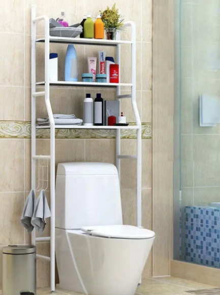 Стелаж для унітазу, дуже міцний та довговічний. Він може ефективно використовувати простір, що не використовується, над унітазом, створюючи кілька додаткових місць для зберігання в переповненій ванній кімнаті. Ідеально підходить для маленької ванної або туалету.