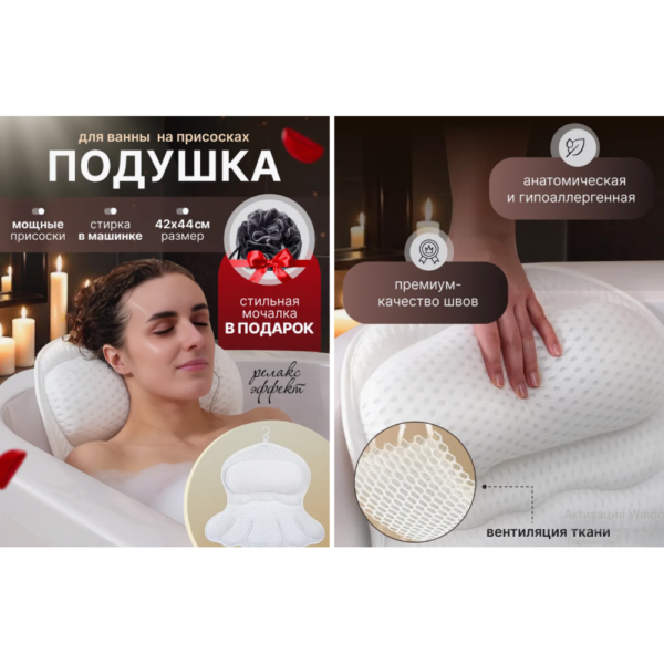 Будьте першим, хто залишив відгук “Подушка для ванной на присосках Bathtub pillow106”“
