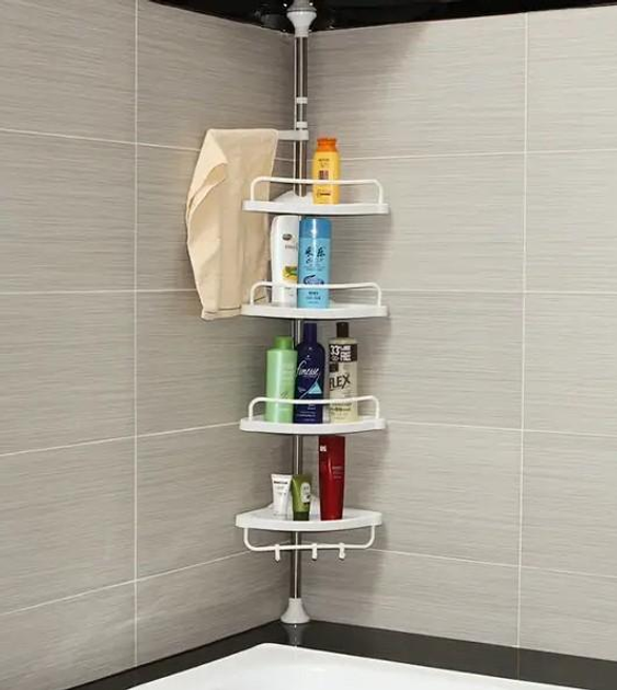 Кутова полиця для ванної кімнати відрізняється компактністю та функціональністю, оснащена тримачем для рушників. На ній можна розмістити всі необхідні у ванній кімнаті речі: гелі для душу, мило, шампуні, піни для ванни, а також всілякі ємності та необхідні пляшечки. Матеріал основи – метал, полиці виконані із пластику, оснащені спеціальним тримачем, що не дозволить предметам впасти та пошкодитися.
