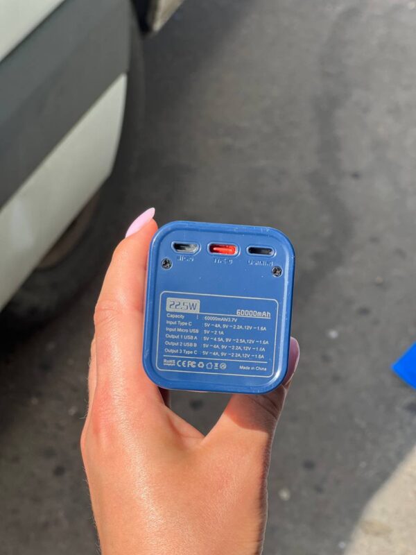 Прекрасне рішення в тривалій поїздці. Потужності павербанка вистачить на довгий час, і Ви зможете зарядити всі пристрої кілька разів. Цей акумулятор забезпечує величезний запас енергії, тому вам не доведеться турбуватися про те, що батарея планшета або смартфона раптово розрядиться. Високоякісний акумулятор забезпечує стабільну роботу, тривалий термін експлуатації й безпеку. Акумулятор має міцний корпус виготовлений із високоякісних матеріалів. Практичний у використанні. Характеристики: Тип призначення: зовнішній акумулятор; Заряджаються пристрої: смартфони, телефони, планшети та інші; Вихідний інтерфейс: Type-C, Usb вихідна потужність: 22,5 Вт матеріал: АВС, ПВХ ємність батареї: 60000 мА·год.
