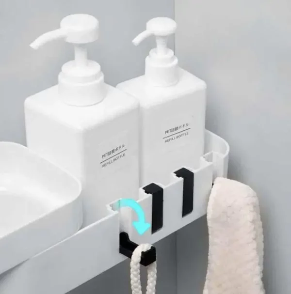 ✅ На краю стійки є 4 гачки, які можна використовувати для підвішування рушників або мочалок, їх також можна скласти та заховати, коли вони не використовуються.
