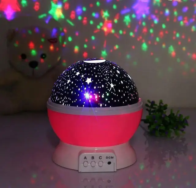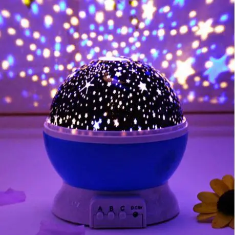 Круглий обертовий нічник-проектор зоряне небо прекрасний подарунок для вашої дитини. Він освітить кімнату вашого малюка прекрасними зірками і місяцем.
