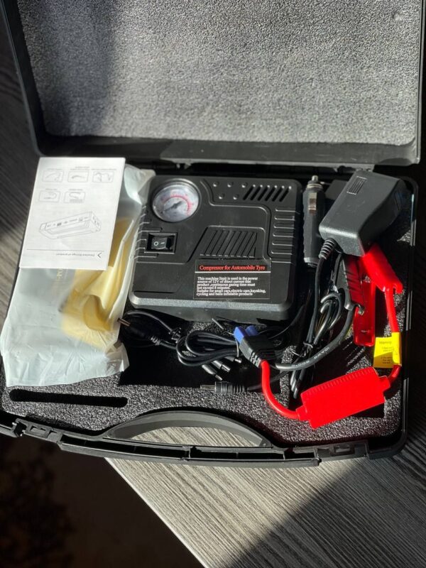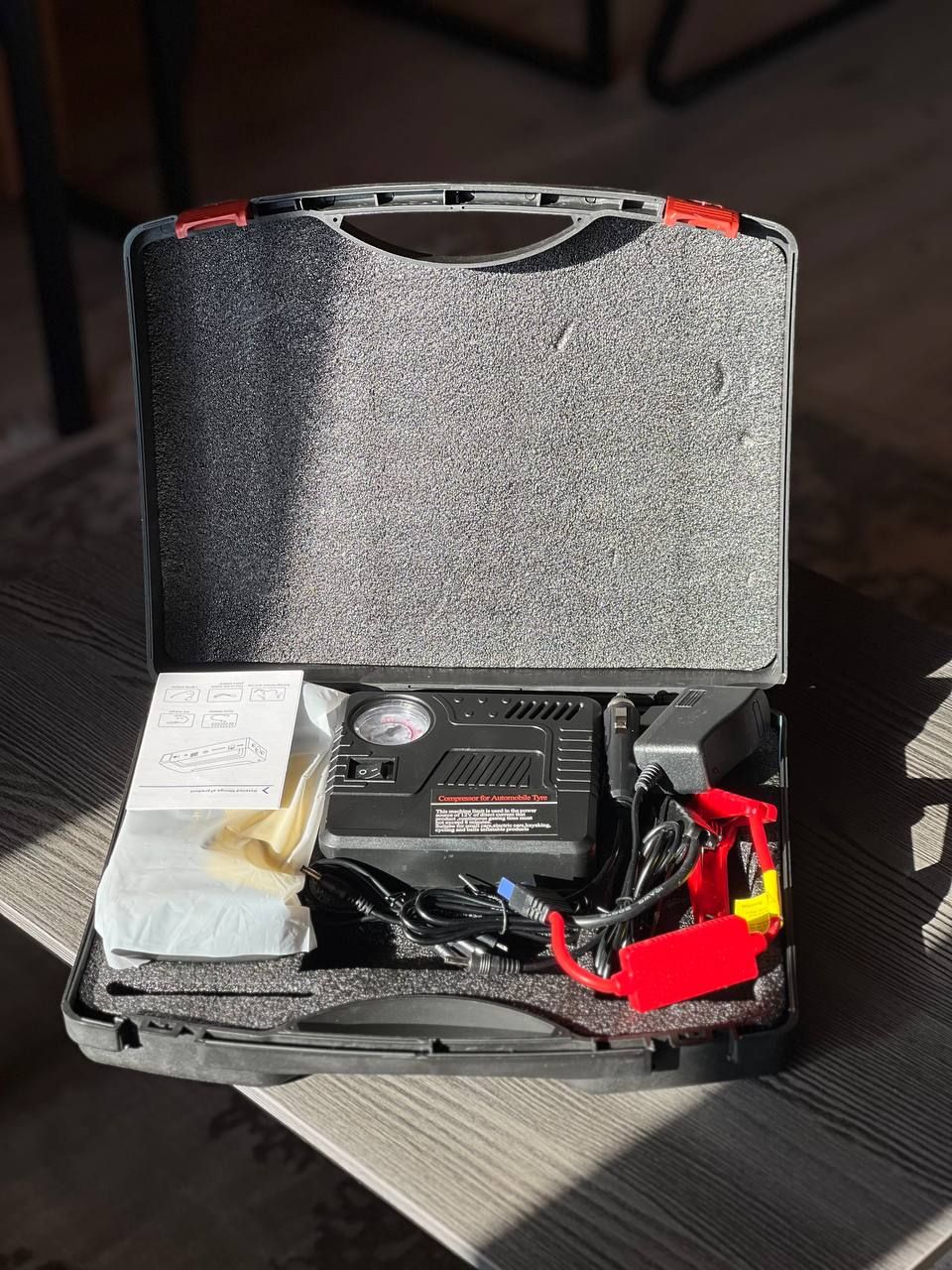 Пусковий акумулятор Jump Starter 68800 мАг – переносний акумулятор для запуску двигуна при розряді акумулятора. Крім того, він заряджає іншу техніку та гаджети. Бустер для запуску авто бустера Пусковий струм: 12, 300А; Піковий струм: 600А; Ліхтарик SOS; 2 USB-виходи; Склобій (один край має металевий конусний кінець); Стропіз (змонтоване у корпус лезо, яке може перерізати ремені безпеки); Індикатор заряду акумулятора; Мідні крокодили. Перемикання стресу: 12В, 16В, 19В; Кількість зарядів/розрядів: близько 3000 разів (хоча на багато років); Потужність: 2000 W