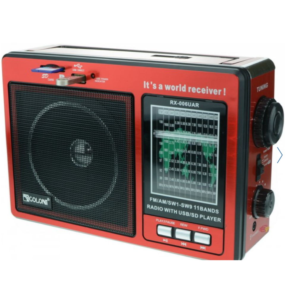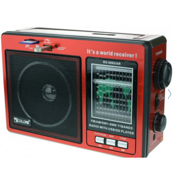 Сучасний радіоприймач GOLON RX-006 зовні досить схожий на приймачі, які були поширені десятки років тому. На зовнішності подібність закінчується, адже начинка цього радіо повністю сучасна. Радіоприймач має роз’єми, за допомогою яких ви можете програти улюблені композиції з карток пам’яті SD та USB флешок.