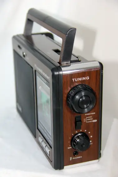 Телескопічна антена, що забезпечує впевнений прийом радіотрансляцій. Радіоприймач працює від вбудованого акумулятора, батарейки, заряджається від мережі 220 В.
