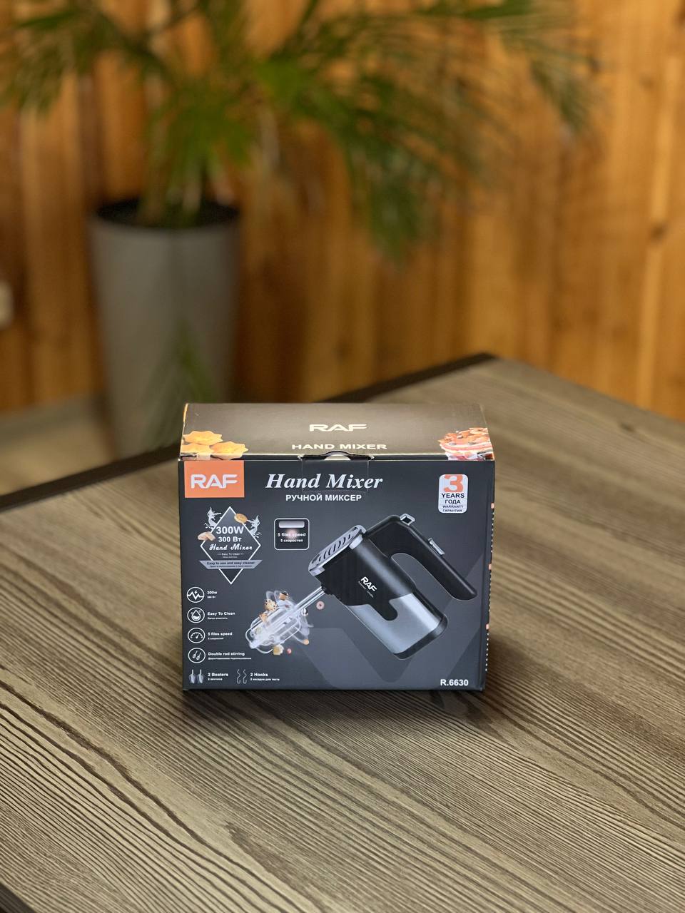 Міксер RAF 6630 електричний 5 швидкостей та 4 насадки 300 Вт Кухонний електричний міксер RAF R-6630 просто незамінний на вашій кухні. Він простий у роботі, але при цьому багатофункціональний. Прилад здатний збити продукт до будь-якої консистенції. Міксер RAF R-6630 має 5 режимів швидкостей. Також є режим «Турбо». Особливості: Висока потужність, 5 швидкостей роботи Характеристики: Країна-виробник: Китай Виробник: RAF Потужність: 300 Вт Кількість швидкостей: 5 Кількість насадок: 4 Управління: Механічне Тип: Ручний Сфера використання: Побутова